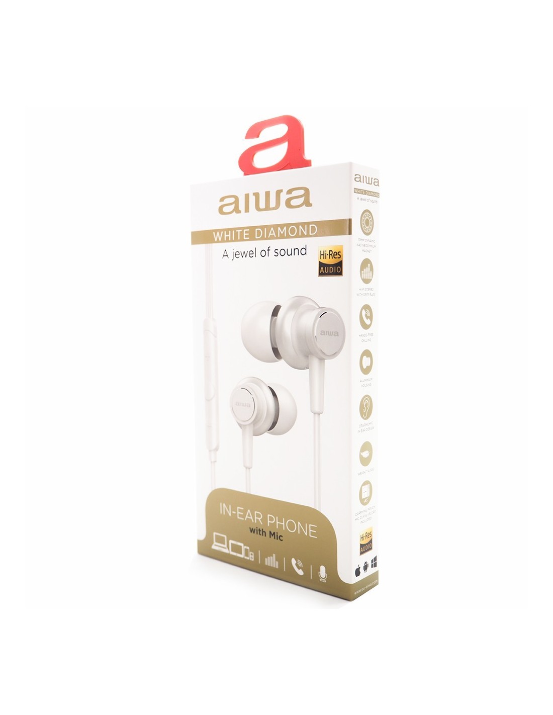 Exclusive design και φοβερή ποιότητα ήχου με τα νέα ακουστικά από την Aiwa ιαπωνικής τεχνολογίας. Υψηλή ανάλυση ήχου, Hi-Fi Stereo με βαθύ μπάσο, ενσωματωμένο πολυλειτουργικό μικρόφωνο για κλήσεις και αποστολή ηχητικών μηνυμάτων, διάμετρος ακουστικού 10mm, επικάλυψη αλουμινίου, ευαισθησία 102dB, αντίσταση: 21 Ohms.