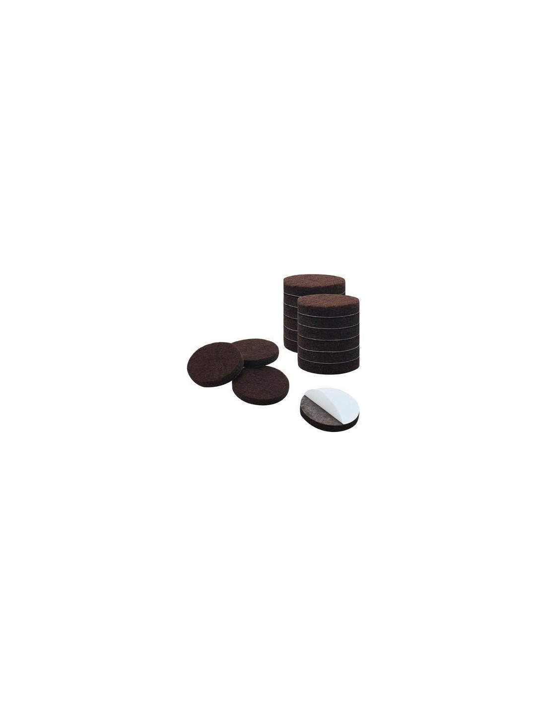 Αυτοκόλλητα τσοχάκια επίπλων σε καφέ χρώμα. Τοποθετούνται στο κάτω μέρος του επίπλου και σας επιτρέπουν να το μετακινείτε εύκολα και χωρίς θόρυβο σε λείες επιφάνειες χωρίς φθορές στο δάπεδο. Προσφέρουν ασφάλεια σε ευαίσθητες επιφάνειες. Κατάλληλα για ξύλινα πόδια επίπλων. Η ανθεκτική στην τριβή τσόχα σε συνδυασμό με την ισχυρή κόλλα, προσφέρουν μεγάλη διάρκεια ζωής. Τρόπος εφαρμογής: Η επιφάνεια πρέπει να είναι καθαρή, στεγνή. Κολλάτε τα αυτοκόλλητα στο επιθυμητό σημείο και πιέζετε σταθερά. Μην χρησιμοποιήσετε το έπιπλο για 24 ώρες ώστε να ενωθεί η κόλλα με το υλικό. Η συσκευασία περιλαμβάνει 16 αυτοκόλλητα.