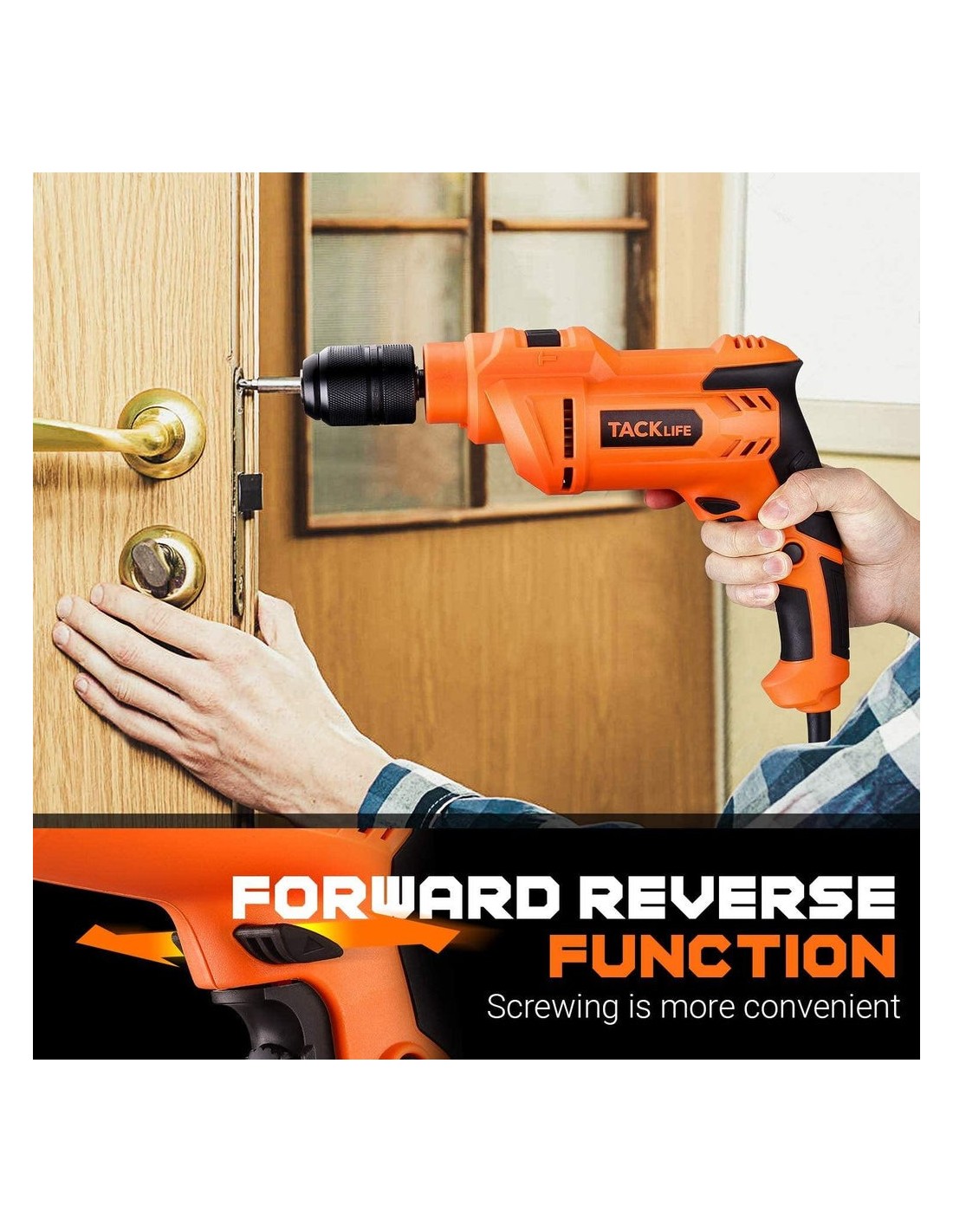- Σκανδάλη μεταβλητής ταχύτητας & διακόπτης εμπρός και όπισθεν: Το κουμπί μεταβλητής ταχύτητας βοηθά στην ακριβή ολοκλήρωση διαφόρων εφαρμογών. Το κουμπί κλειδώματος μειώνει την κούραση για πολύωρη εργασία. Ο διακόπτης εμπρός/πίσω σάς επιτρέπει να σφίγγετε ή να αντικαθιστάτε/αφαιρείτε το τρυπάνι όπως χρειάζεται.