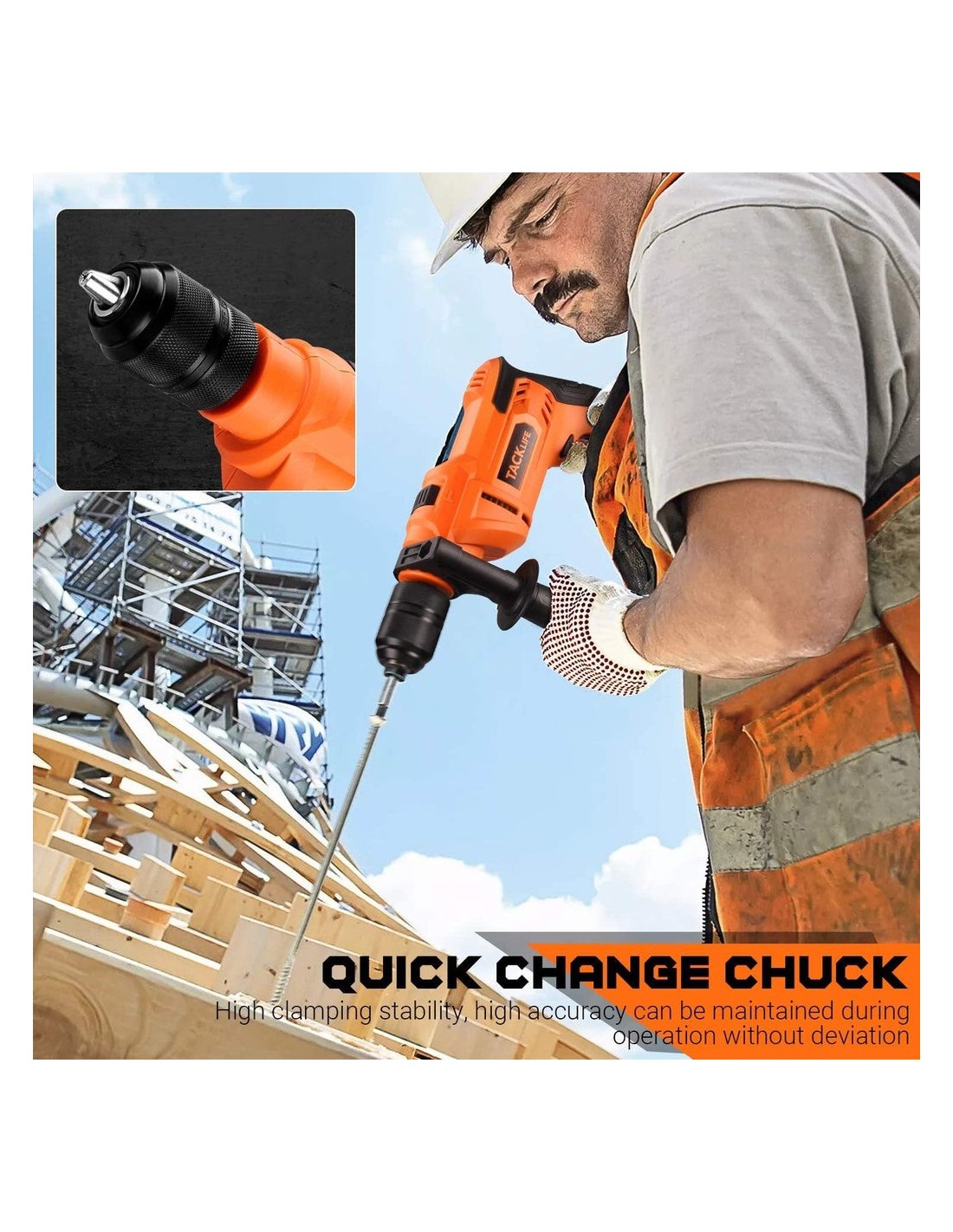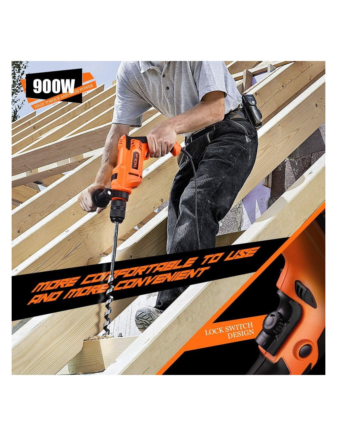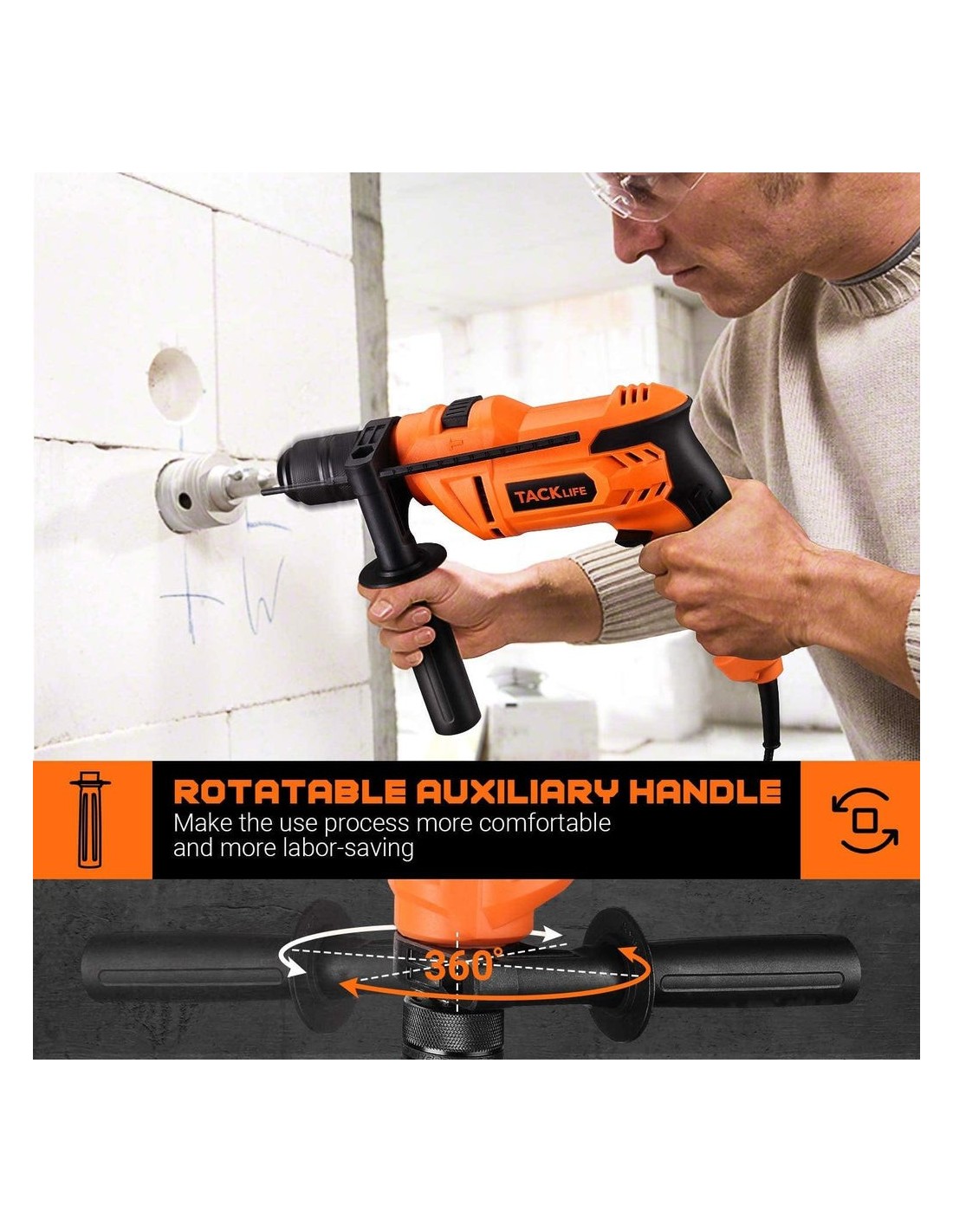 To επαγγελματικό κρουστικό δράπανοTACKLIFE PID05A με 900W, 7,5Amp μπορεί να πραγματοποιήσει γρήγορη και αποτελεσματική λειτουργία. Σφυρί και τρύπημα 2 λειτουργίες σε 1 για εφαρμογή σε τούβλο, ξύλο, χάλυβα, τοιχοποιία κ.λπ. Η μεταβλητή ταχύτητα σας επιτρέπει να χρησιμοποιείτε διάτρηση χαμηλής και υψηλής ταχύτητας σύμφωνα με διαφορετικές σας ανάγκες.