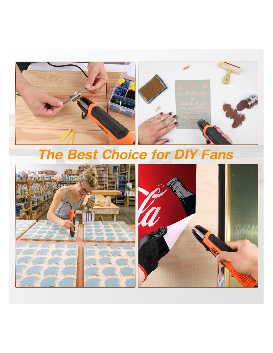 • Ευρεία εφαρμογή: Μπορείτε να χρησιμοποιήσετε το μικρό πιστόλι θερμότητας για συρρίκνωση, εποξική ρητίνη, χειροτεχνίες, κατασκευή κεριών, επισκευή τηλεφώνου, ηλεκτρονικά, αφαίρεση βαφής, αφαίρεση βρωμιάς κα.