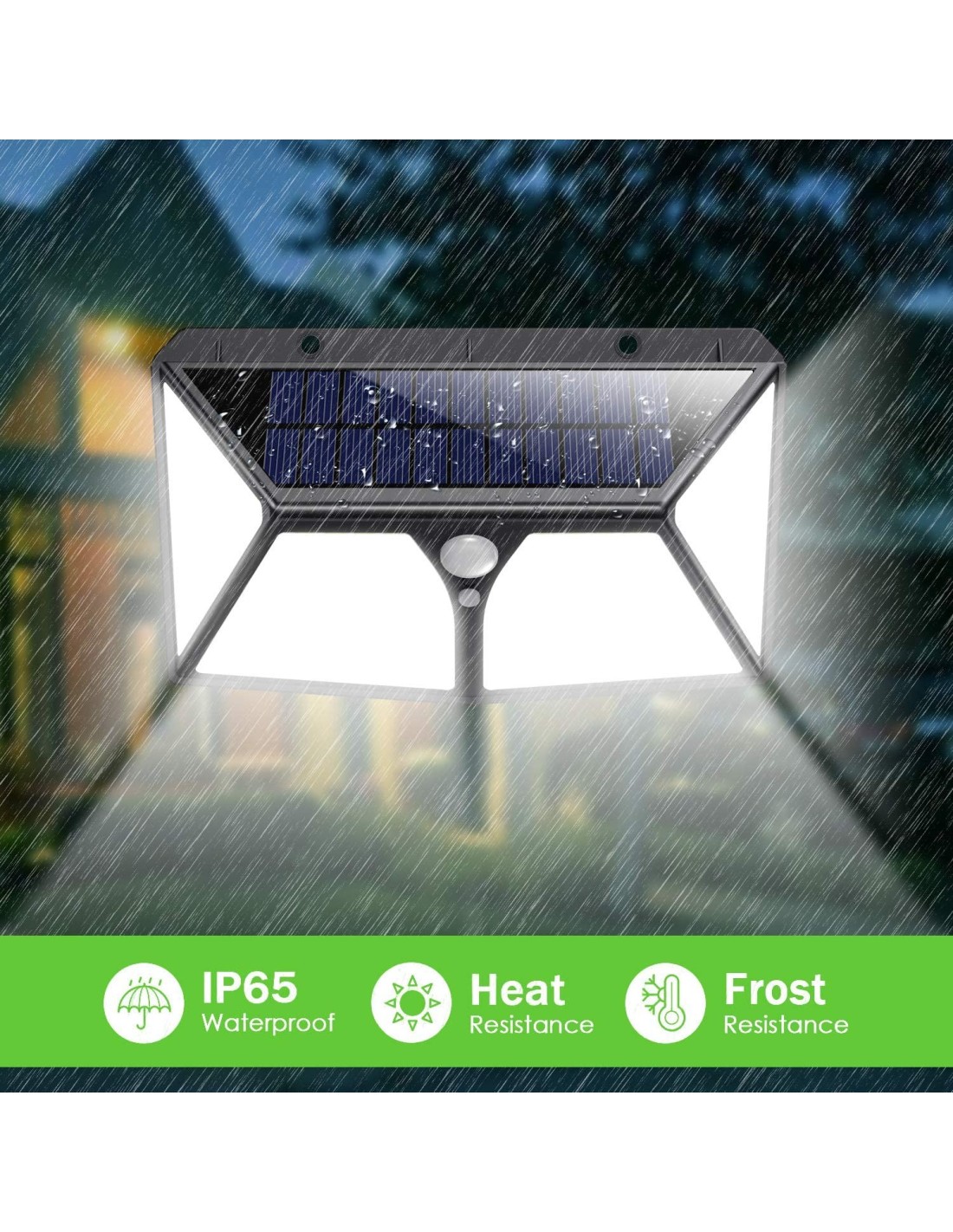 Ηλιακή απλίκα/φωτιστικό Led με αισθητήρα φωτός για να ανάβει αυτόματα στο σκοτάδι. Διαθέτει και αισθητήρα κίνησης για να ανάβει δυνατότερο φως μόλις ανιχνεύσει κίνηση. Ισχυρή φωτεινόυτητα (2500 lumen) και μεγάλη διάρκεια λειτουργίας με μπαταρία Li-ion 2500mAh (3.7V).