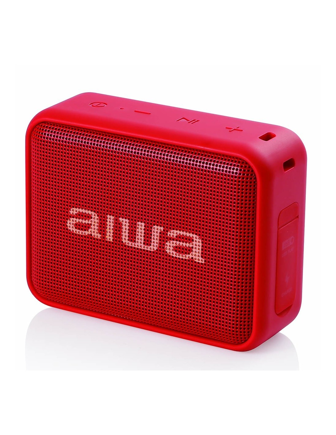 Επαναφορτιζόμενο φορητό ηχείο Βluetooth RGB Aiwa BST-330BK με υψηλή απόδοση, ενσωματωμένο μικρόφωνο για διαχείριση των κλήσεων σας, σε κόκκινο χρώμα.