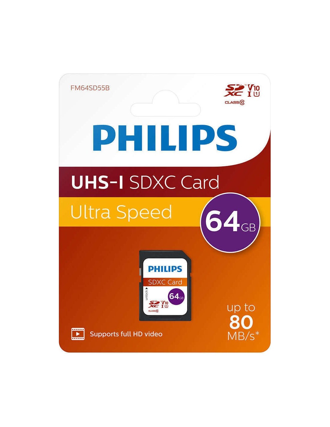 Philips SDXC Card 64GB Class 10 UHS-I U1 FM64SD558/00