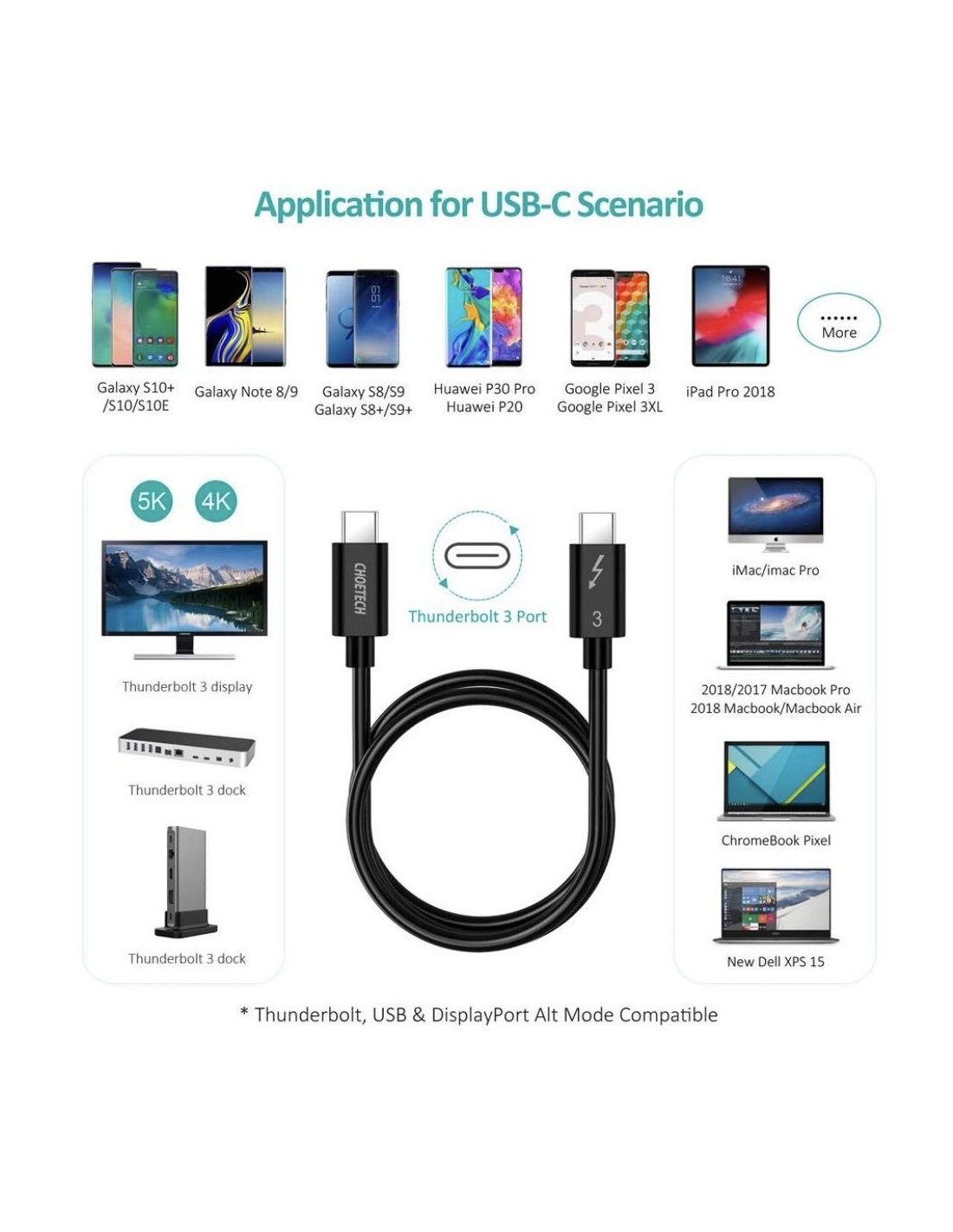 - Ευρεία συμβατότητα: Είναι πρώτα και κύρια σχεδιασμένο ως καλώδιο Thunderbolt 3, αλλά και ως καλώδιο USB-C γενικής χρήσης. Συμβατό με LG UltraFine 5K Display, Macbook Pro 2016-2018, iMac 2017, iMac Pro 2017, Samsung Galaxy S9/9/Note 9 και άλλες περιφερειακές συσκευές με Thunderbolt 3 ή θύρα USB-C.