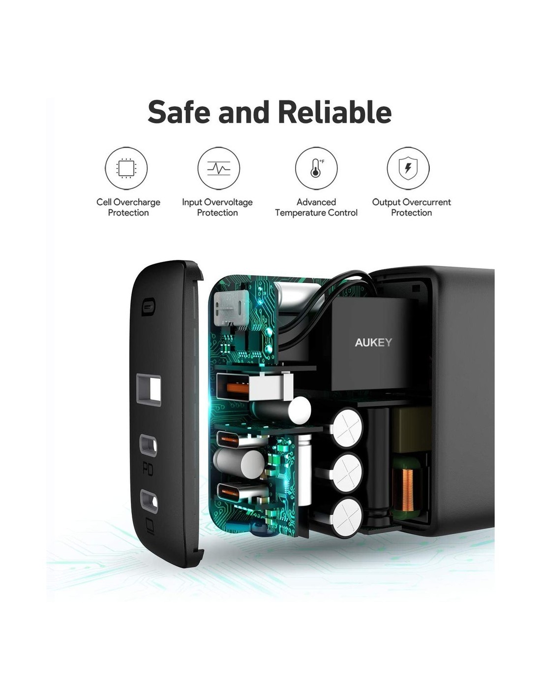 - Προηγμένα κυκλώματα και ενσωματωμένες λειτουργίες ασφαλείας συνεργάζονται για την προστασία των συσκευών σας από υπερβολικό ρεύμα, υπερθέρμανση και υπερφόρτιση. Ισχυρή και αποτελεσματική φόρτιση της συσκευής χωρίς ανησυχία.