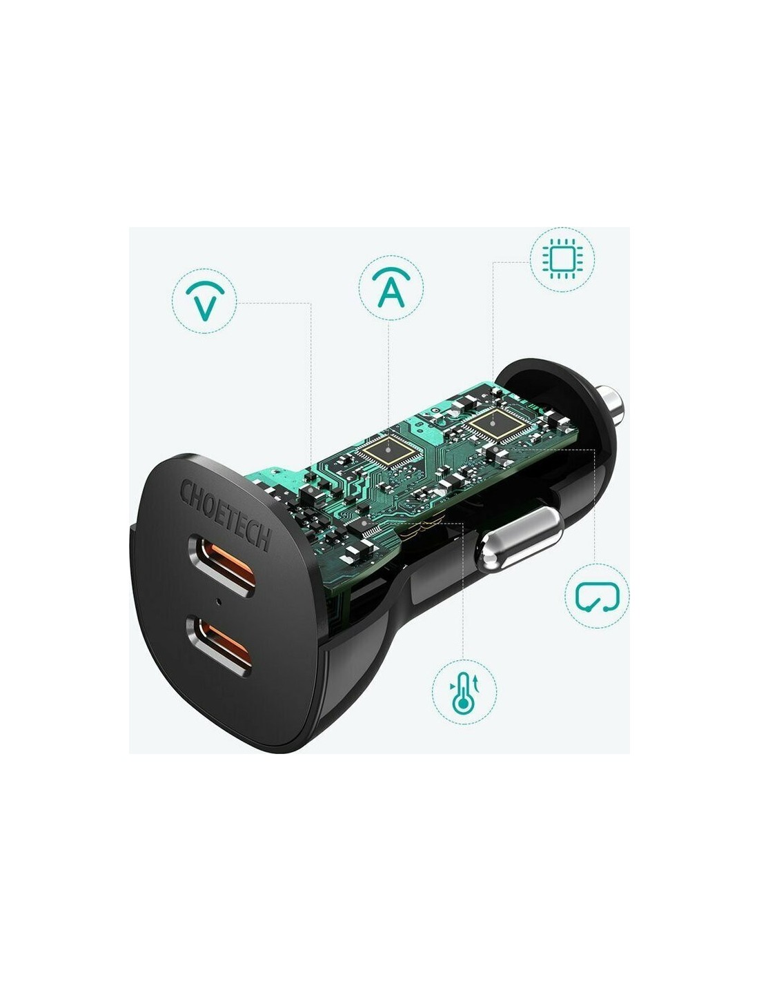 Είναι ο τέλειος φορτιστής αυτοκινήτου. Η Choetech φαίνεται έχει εξοπλίσει το νέο της προϊόν με δύο θύρες USB Type C με υποστήριξη για QC 3.0 και Power Delivery. Έτσι, συνδέοντας το τηλέφωνό σας σε αυτό, θα το φορτίσουμε σχεδόν 2,5 φορές πιο γρήγορα από ό,τι με τους τυπικούς φορτιστές. Επιπλέον, προστατεύει τον εξοπλισμό από υπερθέρμανση, υπερφόρτιση ή βραχυκυκλώματα. Ο φορτιστής είναι μικρός και ελαφρύς, αλλά ταυτόχρονα έχει πολύ συμπαγή δομή.