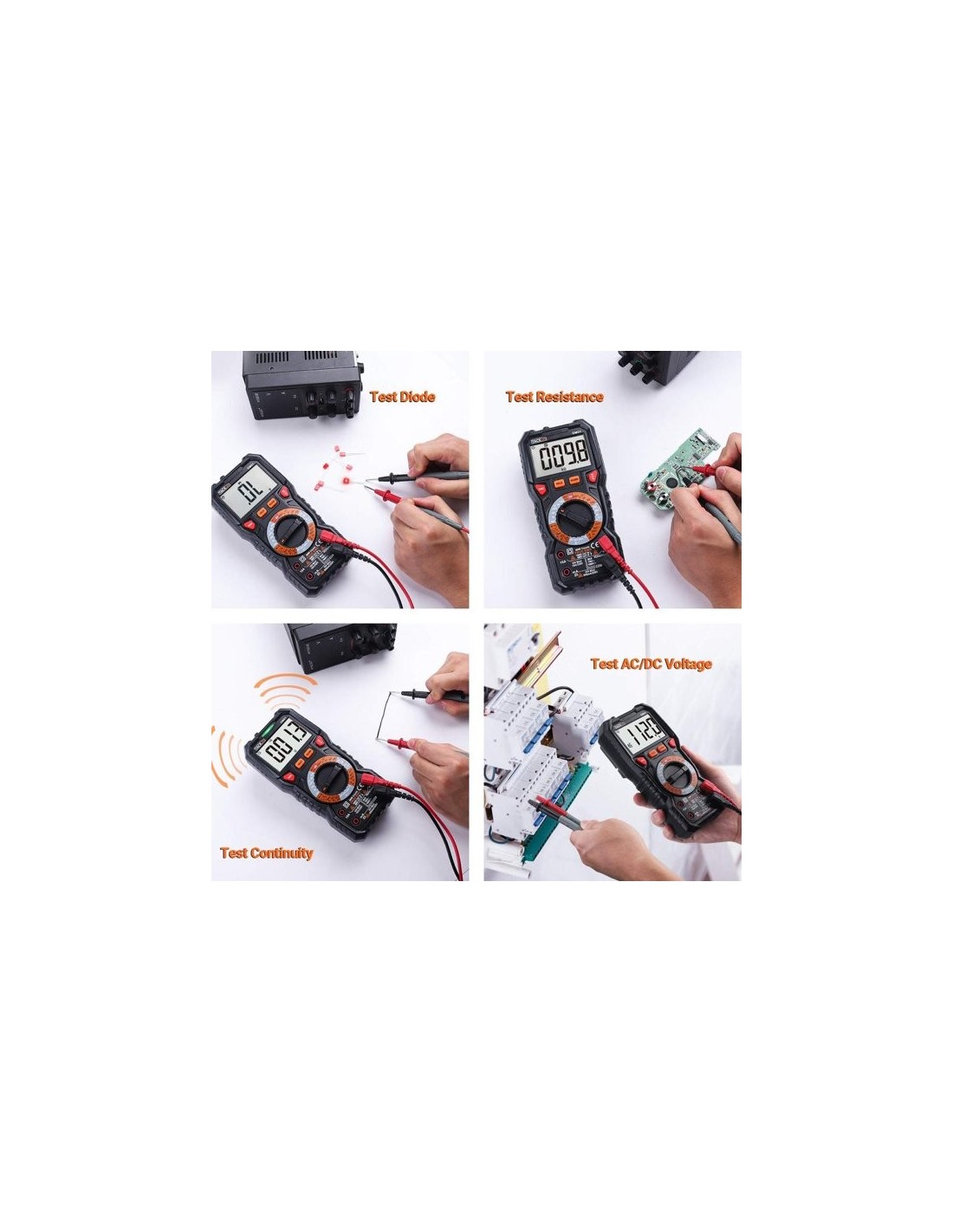 ΠΟΛΥΛΕΙΤΟΥΡΓΙΚΟΣ ΜΕΤΡΗΤΗΣ & ΕΥΡΕΙΑ ΕΦΑΡΜΟΓΗ Ως χειροκίνητο πολύμετρο TACKLIFE, η οθόνη LCD έχει μετρήσεις TRMS 6000, μπορεί να μετρήσει τάση AC/DC, AC/DC ρεύμα, αντίσταση, χωρητικότητα, συχνότητα/λειτουργίας, δοκιμή διόδου, δοκιμή θερμοκρασίας . Αυτές οι λειτουργίες βασικά καλύπτουν όλες τις πτυχές της δοκιμής κυκλώματος και μπορούν να ικανοποιήσουν όλες τις απαιτήσεις της δοκιμής κυκλώματος. Για αρχάριους, η έξυπνη ένδειξη LED αυτού του μετρητή σας βοηθά να χρησιμοποιήσετε.